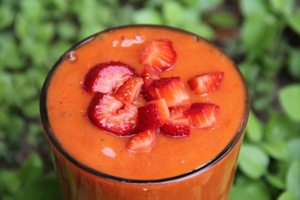 This mango apricot smoothie is like dessert in a glass. What is so amazing is that with just a three different fruit whipped up in a blender in less than one minute you can have a perfect meal ready to go! There is no added sugar in this smoothie, there is absolutely no need for it. The key is using really ripe, fresh fruit. When fruit is ripe the natural sugars in it are naturally so sweet you won’t need to add anything else. The simplicity of ripe, whole, organic, raw fruit blended is really a treat in itself. No dairy, soy or added sweetener needed here! So I invite you to enjoy the simplicity of this smoothie and its natural sweetness and share it with your family and friends.