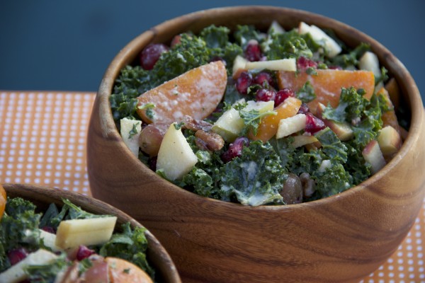 Persimmon Apple Kale Salad with Tangy Tahini Dressing